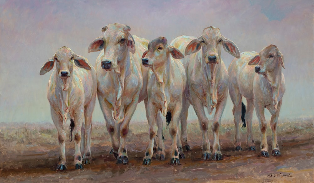 I love to simply present Brahman cattle with their beautiful personalities in a head-on way. I chose to present them in cloudy weather, which bathes them completely in light. Closely knitted together, in perfect harmony and unity with one another.