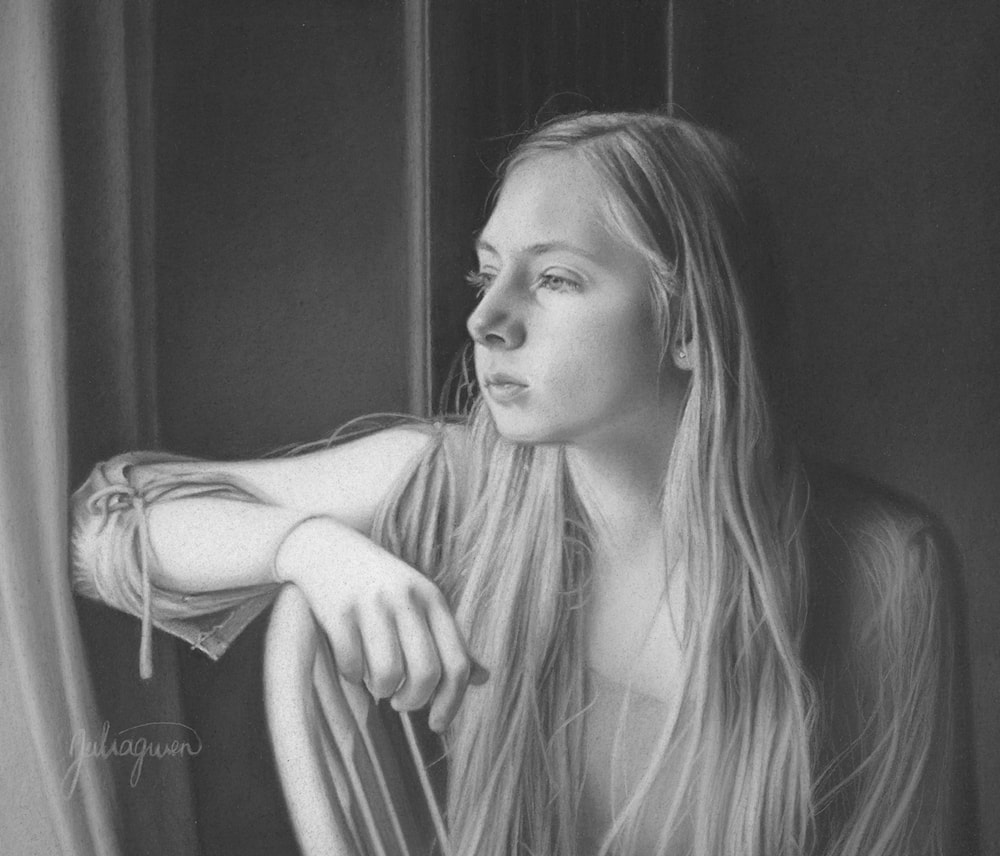 Completed at age seventeen, this self-portrait will stand as a marker of my improvement and growth as an artist. In it, I gaze into the distance, curious and contemplative about my future. As my expression is quite hard to read, it represents not only the hope but also the fear I may have regarding the future. Despite this, when I look at the piece I am reminded of the people that have encouraged me through the process of creating it and am comforted.