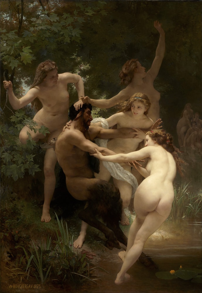 In October 1977, I walked into the Clark Museum, Williamstown, Mass., to see their thirty Renoirs, and after leaving the Renoir galleries walked out into a major hall, at the end of which was a painting that grabbed me body and soul. It was a life-size painting of four water nymphs playfully dragging a mythological satyr into a lake against his will. Frozen in place, gawking with my mouth agape, cold chills careening up and down my spine; I was virtually gripped as if by a spell that had been cast. It was so alive, so beautiful and so compelling. Finally, after about fifteen or twenty minutes of soaking up wave after wave of artistic and spiritual ecstasy, I started to take back control of my consciousness ... my mind started racing with unanswered questions. My first thought was, "I haven't felt this way about a work of art since I stood before Michelangelo's David." Then I thought, "This must be one of the greatest old master paintings every produced. But no name or country or time would come to mind. Italian High Renaissance, 17th Century Dutch, Carravaggio , Fragonard , Ingres , Prud'hon , ... back further perhaps ... Raphael , Botticelli , Leonardo , no! No! NO! Not one of those names or times felt anything like what I was looking at.