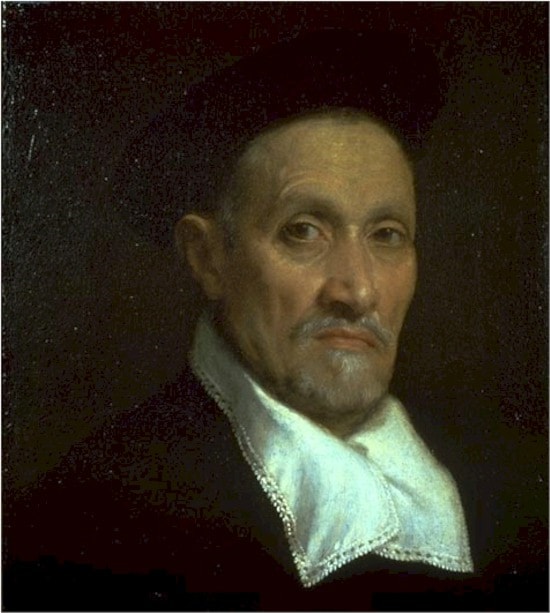 Approximately thirteen years separate this painting from the portrait of Lucrezia Agliardi Vertova. It is one of many small bust-lengths that Moroni painted during his years back in Albino. These portraits, frequently of unidentified men and women, show the local petty nobility and tradesmen. We don't know in fact if this man was a magistrate. His baretto and soft white collar don't really tell us what he did for a living. Most of Moroni's male sitters wear black, which indicates a certain level of prosperity since black was an expensive dye. The aged man seems to look upon us with an appraising gaze, one brow slightly raised. Once again we feel that we're in the presence of a living being.