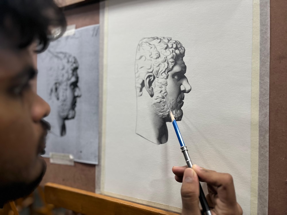 I come from a family of sculptors in a small town, and the fire for art was always burning inside me. To hone my professional skills, I came to Pune after completion of high school, to dedicate myself totally to art. For the past 2 years, I am learning portrait drawing and figure drawing. This has given me the confidence to teach other students and appreciate the breadth and depth of this magnificent subject. I am happy to be growing professionally and to be designated as a part-time teacher.