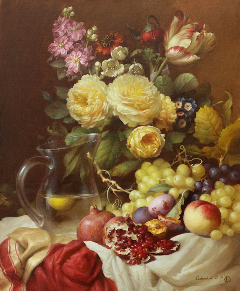 Dmitry Sevryukov is an acknowledged Realist artist whose work impetuously wins recognition all over the world. Inspired by masterpieces of the old masters and being taught by distinguished modern painters, Dmitry has developed his own method of realistic, artistic representation of natural objects, based on the thorough elaboration of compositional details in the context of the overall unity. At the same time, the magic play of contrasts, forms, colors and shades in Dmitiry’s paintings, as well as his skillful use of light and formation, generates that extraordinary perception of his work which differentiates the genuine work of art from just the traditional. The unique paintings of Dmitry Sevryukov are a rare opportunity to admire and enjoy; magnificent, harmonious and multifaceted, nature made objects.