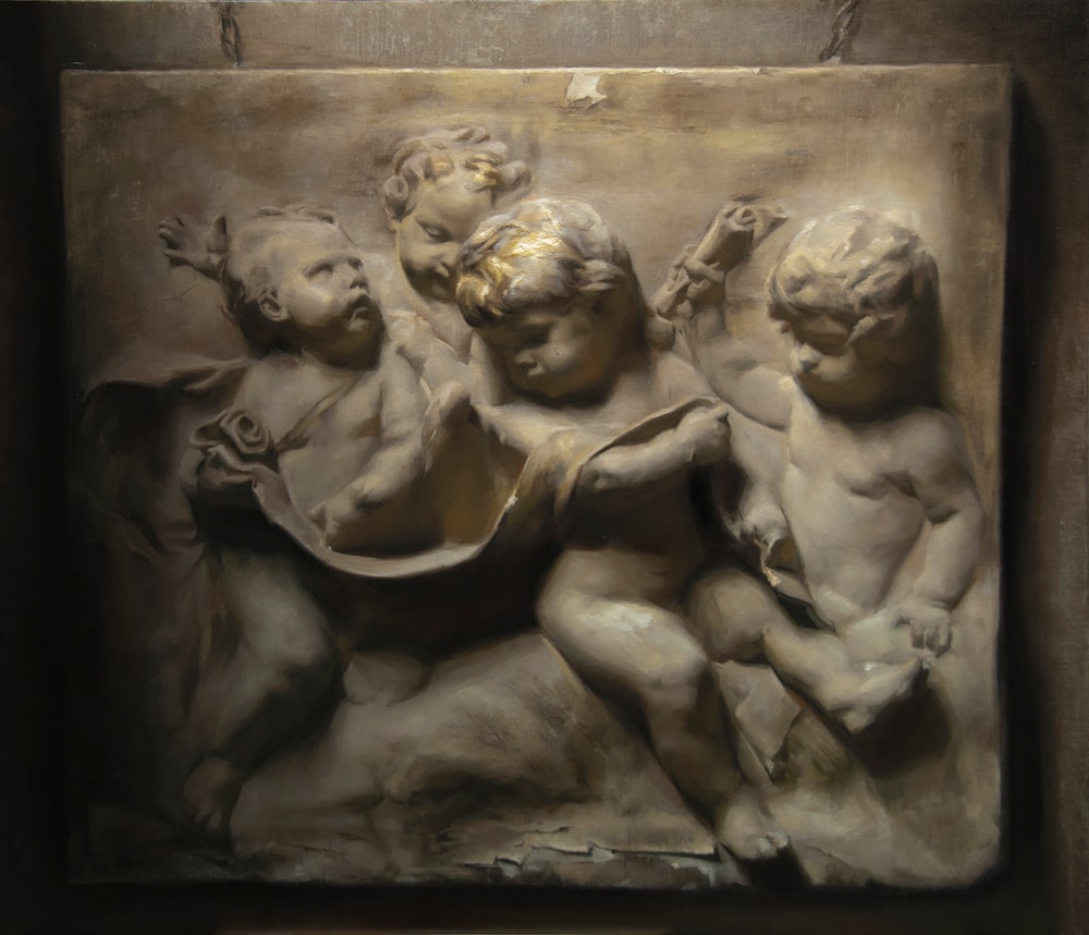 Cast Painting from life under natural light. Limited Palette: white, black, cadmium red light, and yellow ochre.