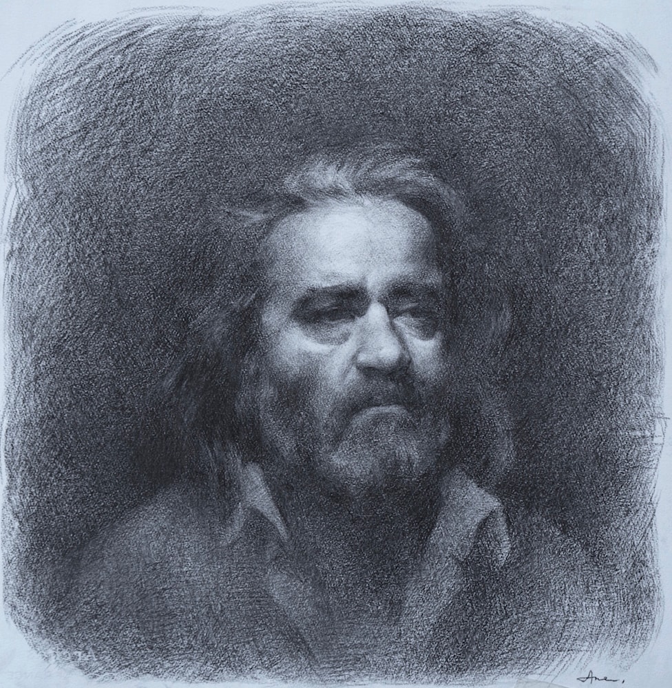 Charcoal portrait from life of the model Carlos. 5 sessions of 3 hours.