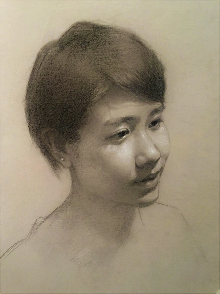 pencil, white chalk 13 3/4 x 9 3/4 ins (35 x 25 cms)