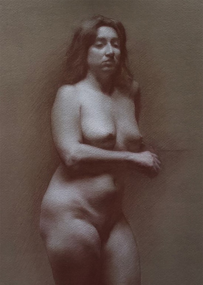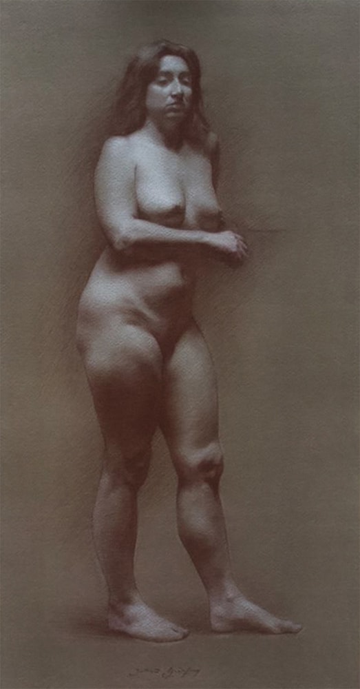 Sepia and white chalk 31 1/4 x 15 1/2 ins (80 x 40 cms)