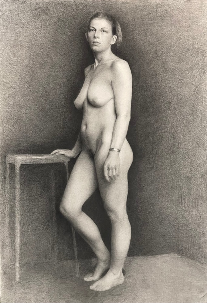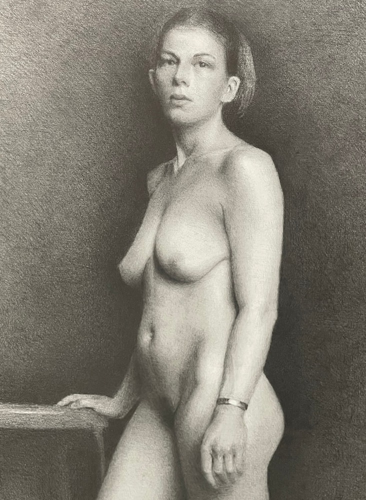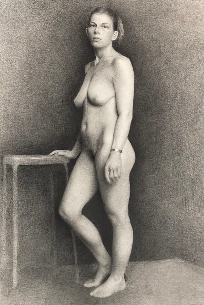 Drawing from life on arches watercolor paper, graphite and compressed charcoal