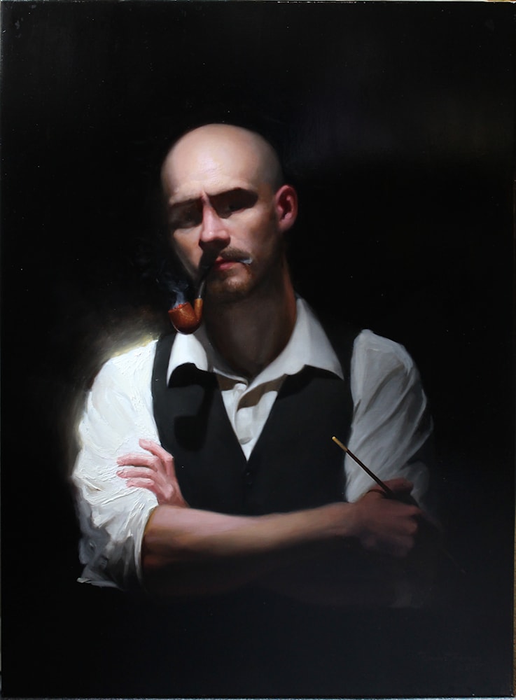 Made from all personally ground pigments.... I still have an 1898 pump organ piano in my driveway that I stripped the Ivory keys for to make black. The painting has many hidden symbolic peices hinting to the relationship of the higher and lesser self.