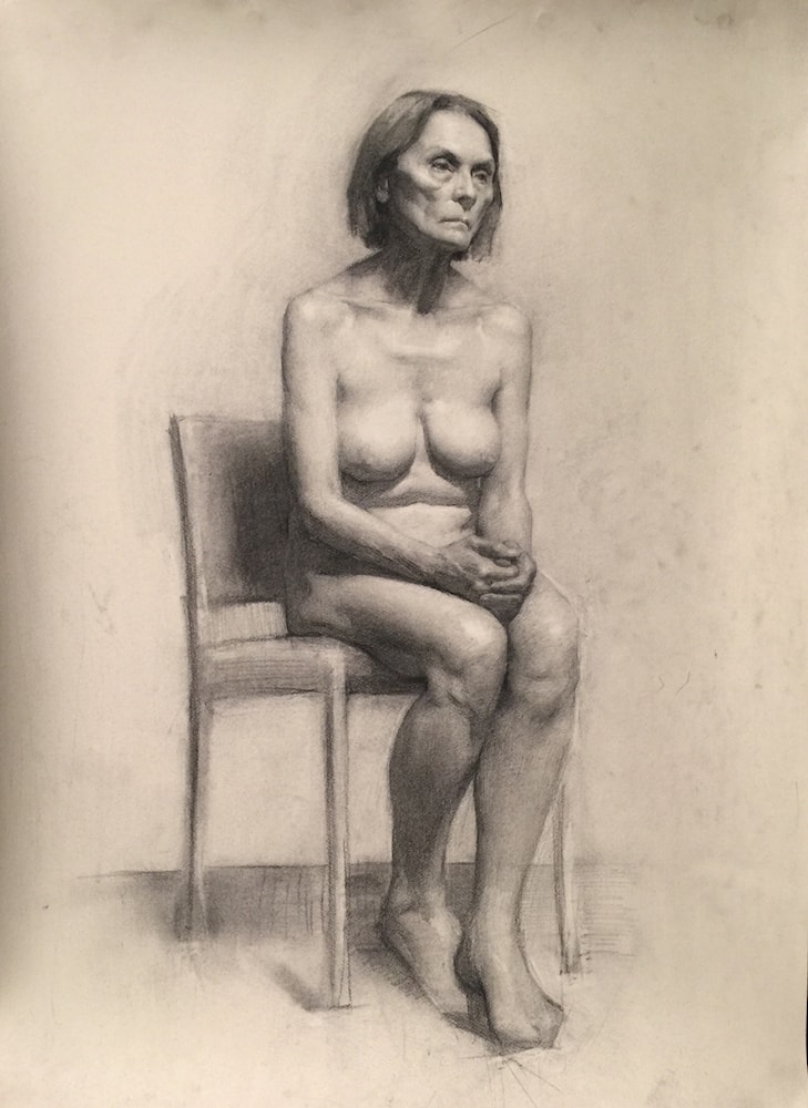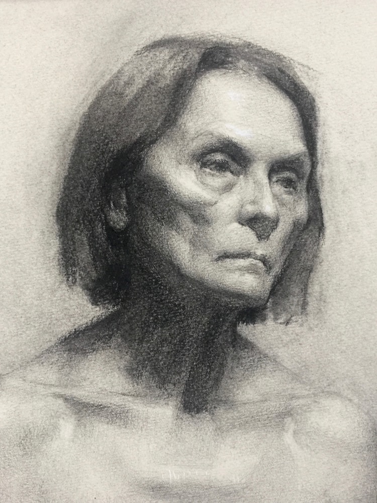 Charcoal, Graphite, and White Chalk on Toned Paper
