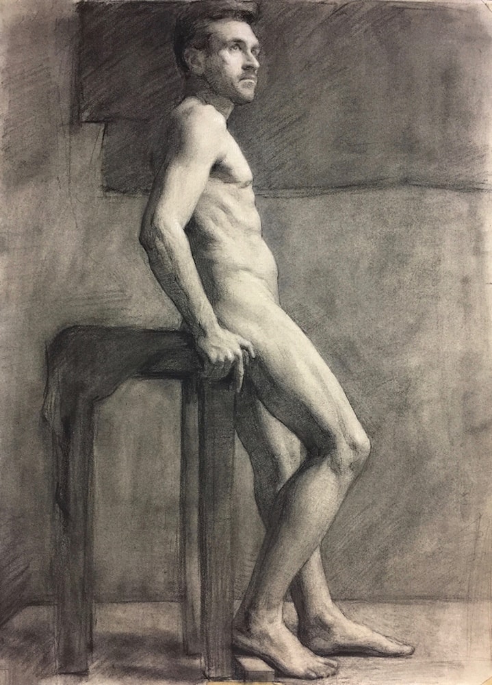 Charcoal, Graphite, and White Chalk on Toned Paper
