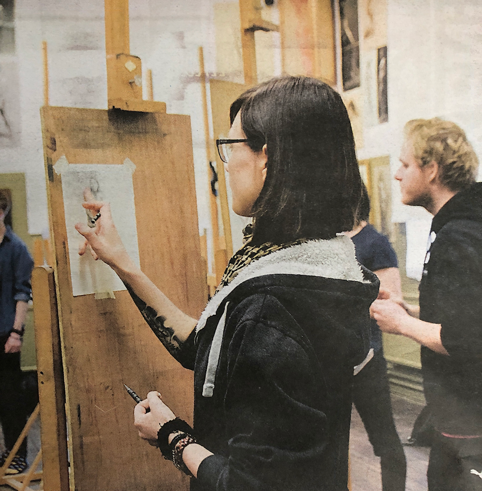 I also very much enjoy experiencing different mediums. I was lucky to be shown the art of etching by my instructor Hans-Peter Szameit, which has absolutely captivated me. And having the etching press now available at the academy offers a chance for me to dive into the technique and I explore it's beauty and incredible potential.