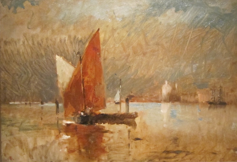 Red Sail in the Harbor at Venice
