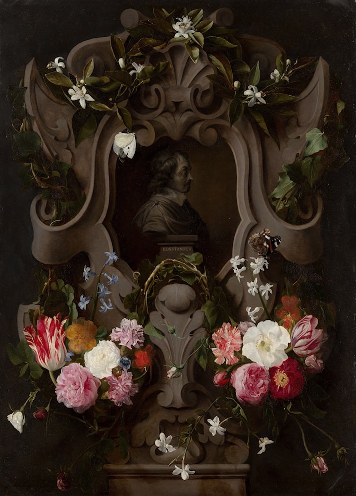 Bust of Constantijn Huygens Surrounded by a Garland of Flowers (1596–1687)