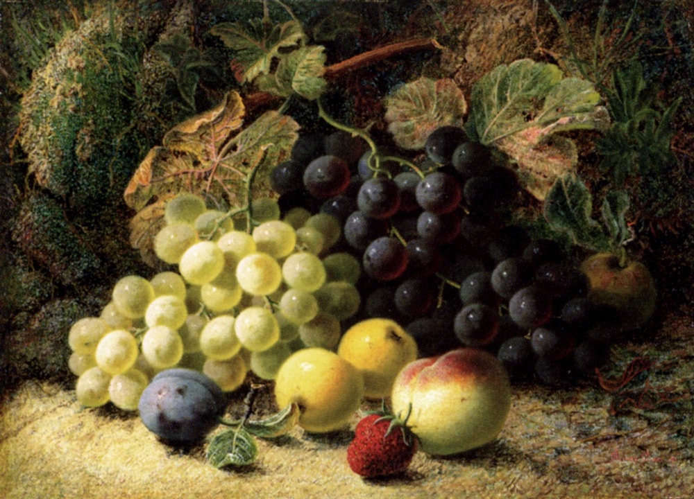 Grapes, Apples, A Plum, A Peach And A Strawberry, On A Mossy Bank