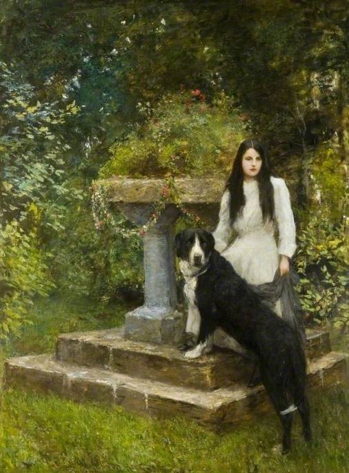 Gwenddydd and Her Dog in a Garden