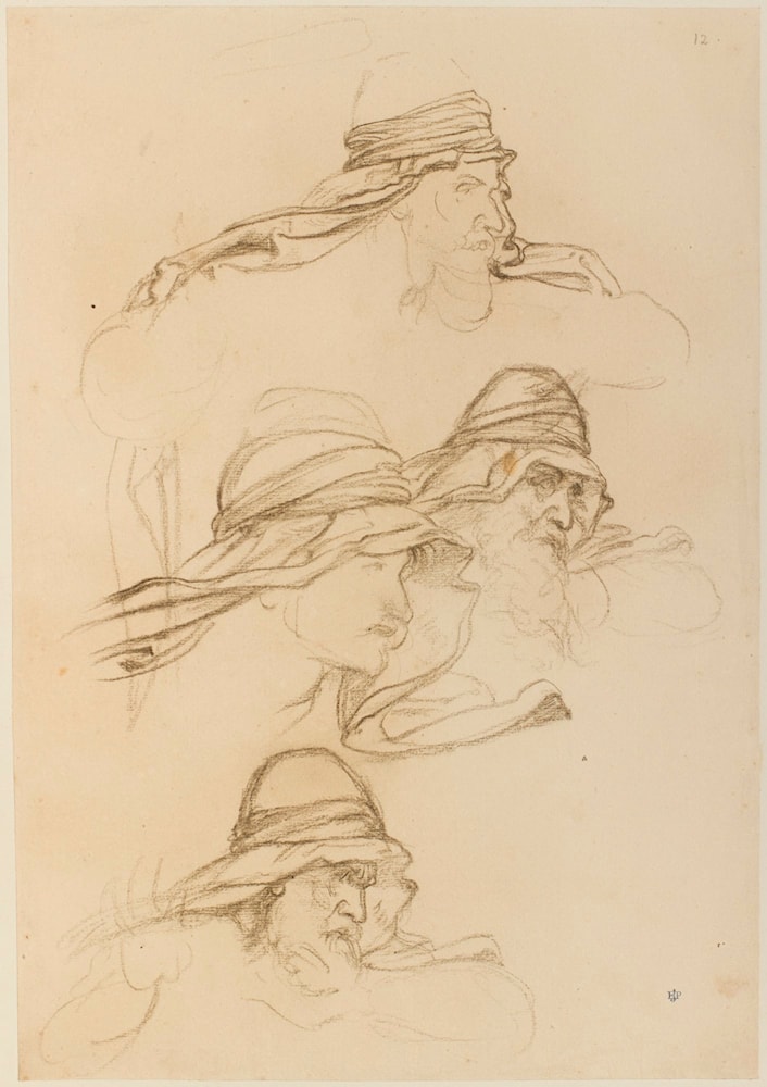 Studies for the head of the High Priest in 'The Trial of St. Stephen'