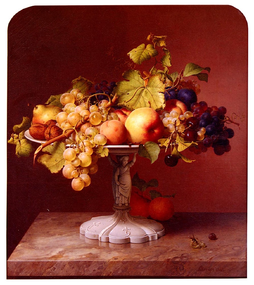 A Still Life With A Bowl Of Fruit On A Marble Table