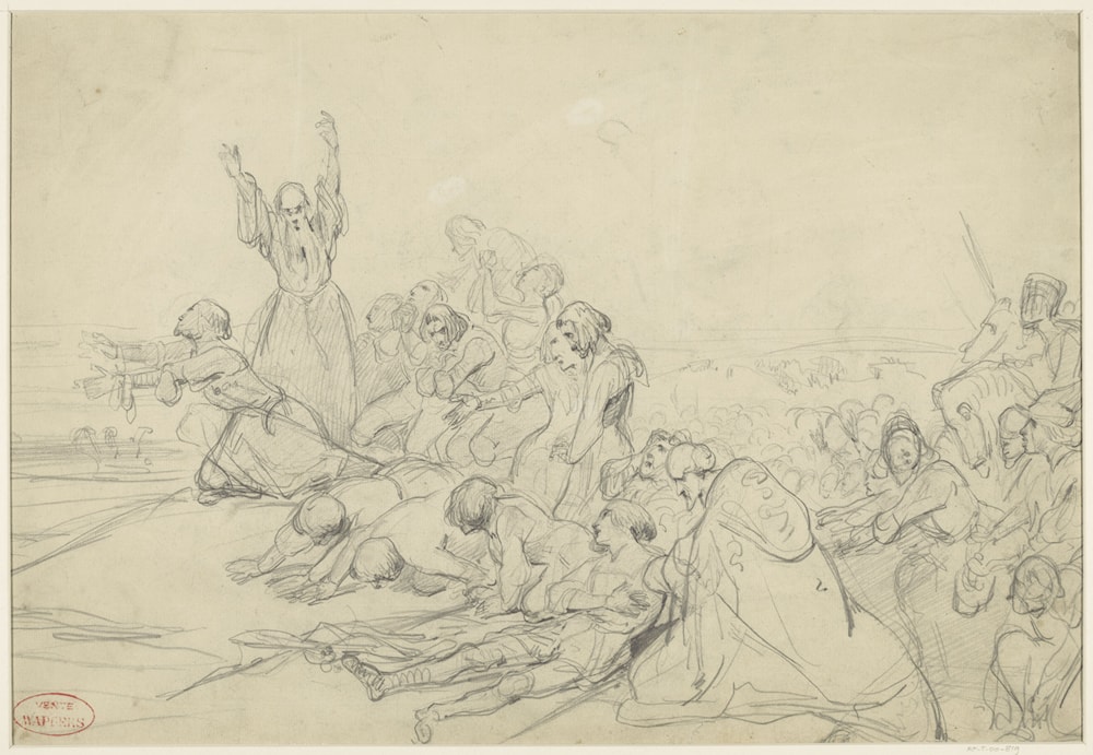 Kruisvaarders vanaf een berg de stad Jeruzalem aanschouwende