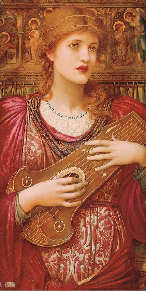 'Thy Music, faintly falling, dies away, Thy dear eyes dream that Love will live for aye'