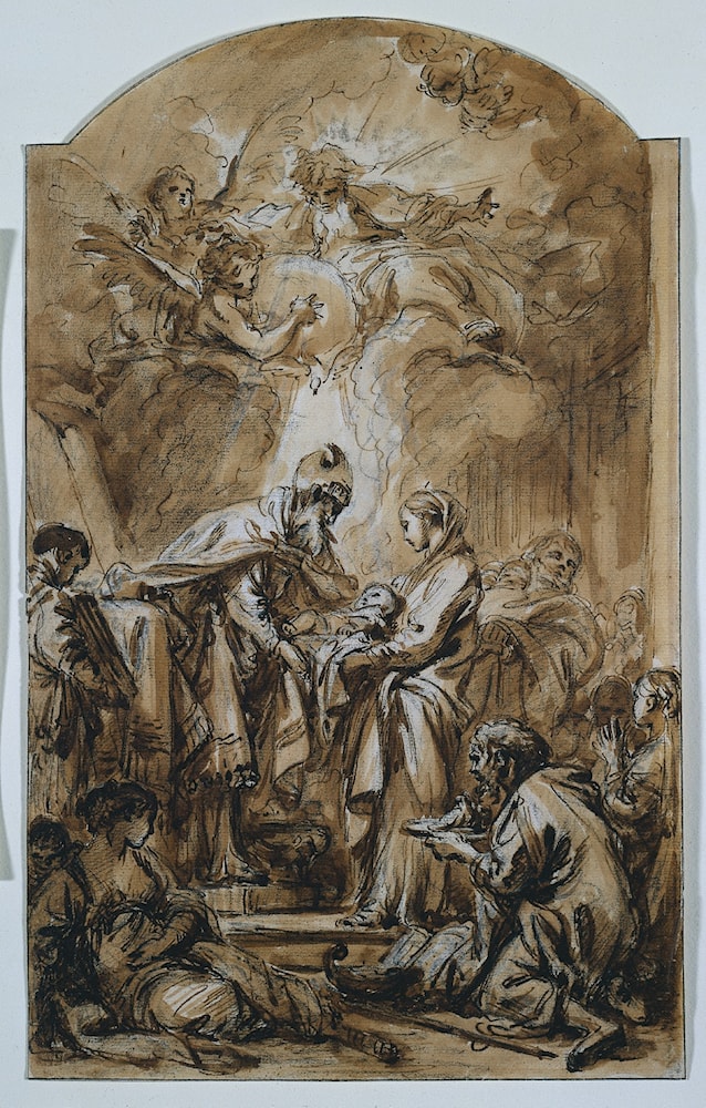 Pen and brown ink, brush and brown wash, and black chalk, heightened with white paint, framing lines in brown ink, 1770