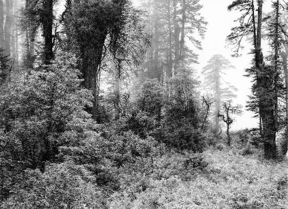 I drove more than 3,000 kilometers to the virgin forest in Medog County, Tibet. I saw this forest and in order to choose the best angle I climbed up the hillside of the mountain which was covered with thorns. Because I was unfamiliar with the terrain, I almost slipped into a deep ravine, so I had to draw it to commemorate the scene of my escape from death. This drawing has special meaning to me and adds a different kind of emotion.
