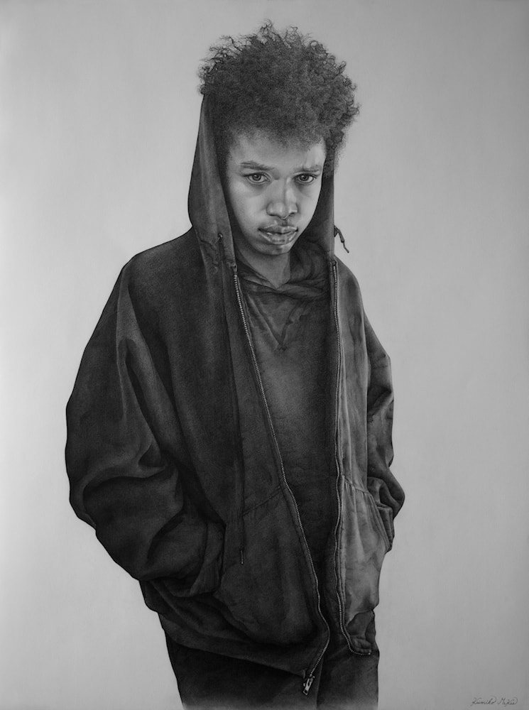 “I was abandoned by my mother when I was baby and she never came back, which caused my parents to divorce. I was raised by my grandmother until I was 18 years old and after that I ran away from home as soon as I graduated high school. My childhood was quite unhappy and lonely and I often thought about suicide when I was a teenager. I was able to cope with my loneliness and to escape from all the pain from my childhood by drawing portraits. While drawing the portrait of my nephew “Isaiah” who was in a similar situation as when I was his age, my childhood feelings revived and unconsciously flowed into the portrait, which made the portrait so emotional. The facial expression of him with the vulnera- bility of childhood, is an inner part of him, but it is also part of my childhood as well.
