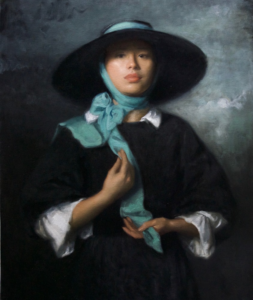 This portrait was painted at the Charles H. Cecil studios in Florence, Italy. Rominha posed for 1 month and I painted it entirely from life, under natural light, using the sight size method. Rominha is Peruvian but moved to Florence as a child with her family. This is the last of 5 portraits I painted of her over a period of 3 months. It was wonderful to paint one person so many times, as it gave me the opportunity to experiment with composition and technique. She was an incredibly inspiring model who was so present throughout the process. We exchanged ideas and looked at old master paintings together to help me solve problems I encountered in the composition along the way. In my portraits I strive to evoke the timelessness in the old master paintings I most admire, but at the same time, create something relevant to now.