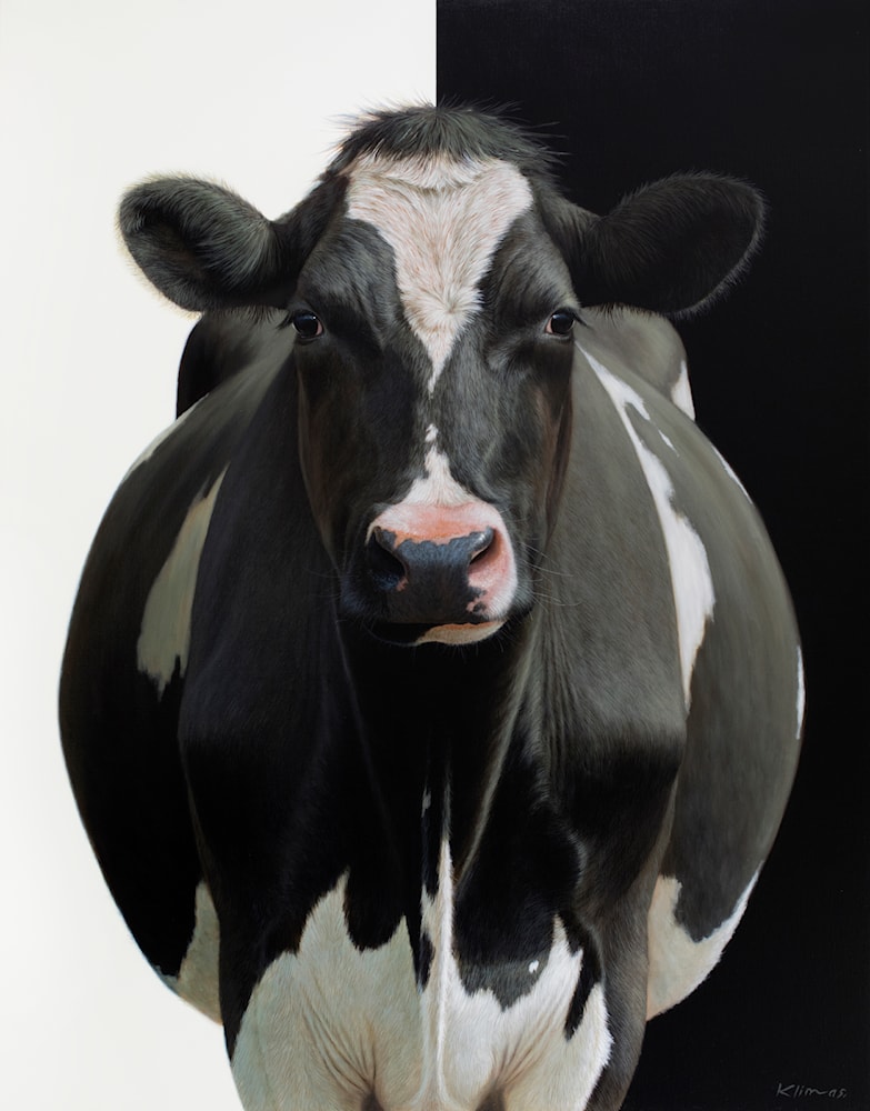 My models are farm animals. My favorite are the Black Pied cattle. Pets are pampered and adored, but we are spared images of animals for the meat industry. I want to shed light on this group of ‘forgotten’ animals. Will that change how we see these animals? That is what I explore.