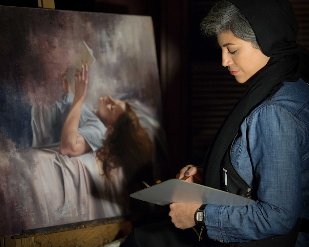 Academic education based on Modern Painting in university was not personally adequate for her and for this reason, in 2000, she attended in Master Iman Maleki’s courses in order to learn classic and realistic painting.