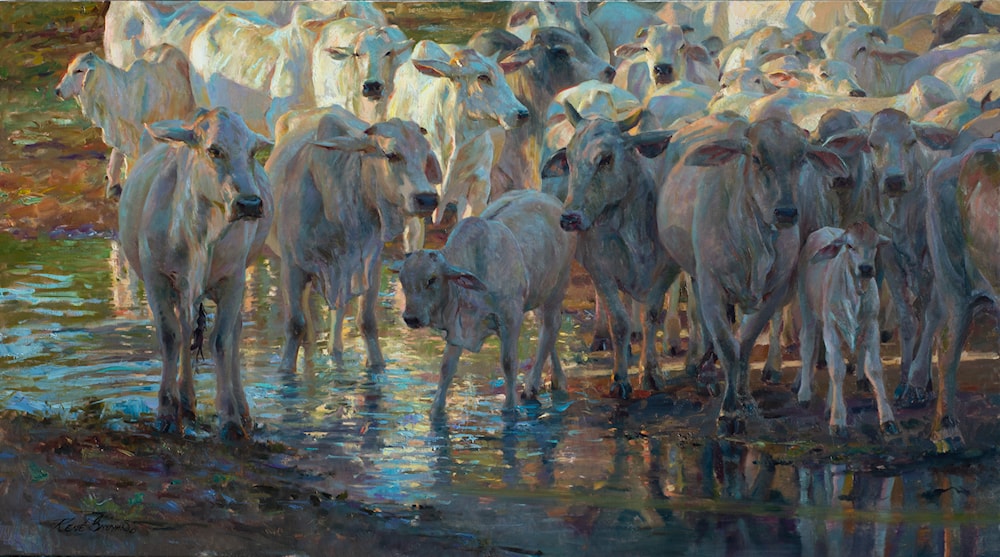 Her paintings explore the effects of light on various surfaces. The artist draws her inspiration from nature, her childhood and her daily life experiences. Often it is just the way the light falls and plays on a certain object that excites her. René describes the essence of her artwork as intimacy: “this would really be the one word to describe my paintings – intimacy with the landscape, figures and the animals I portray. ” Her aim is to draw attention to the beauty of creation with “in-your-face” compositions, never depicting nature as something distant. René had poor eye sight since she was a little girl; it was only discovered when she was about 11 years old. So growing up in the Kalahari Desert close to the earth she imagined worlds on the sand and between the grasses. She learned to see the world from ground level and in detail. That which was far away never registered or meant anything to her because it was completely out of focus. This disability had a major influence on her career as an artist. “Until this day this is how I perceive and relate to things around me. I love them to tower above me and be right up front”. “Communication, as well as intimate and personal stories, also happen in a close-by environment – the further something is removed from one in space, the more impersonal it becomes; the same with painting.” Her work is more interpersonal and interactive and less “distant” or removed from the viewer/observer.