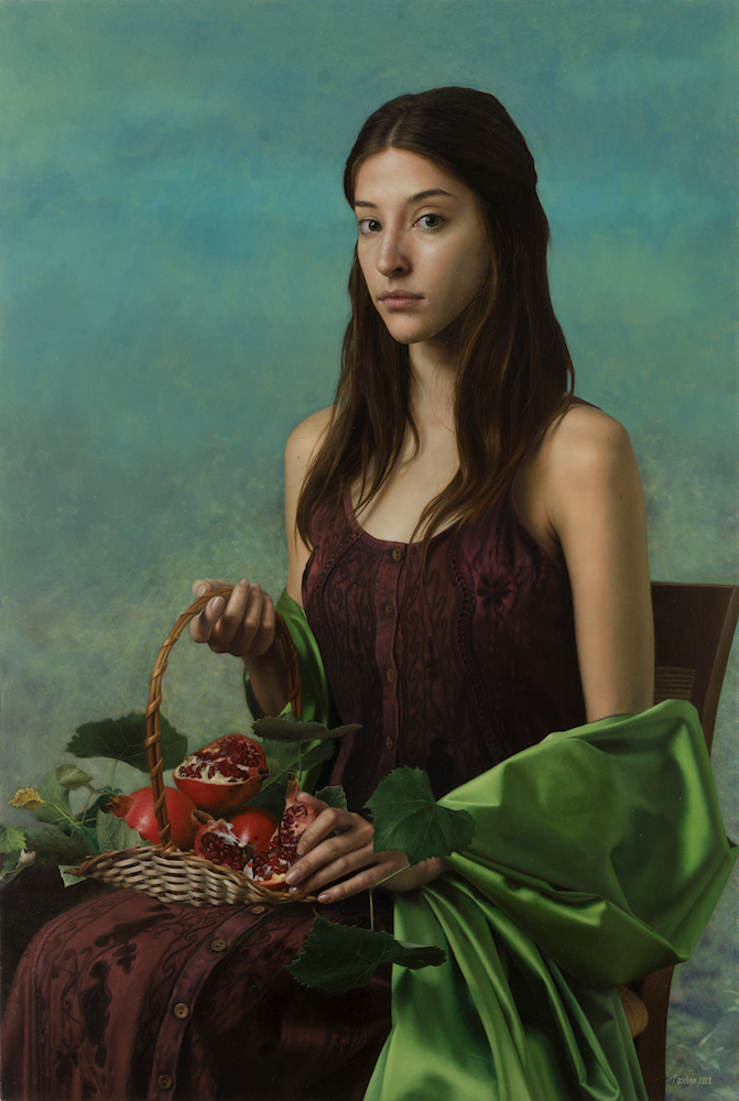 The myth of Proserpina represents the changing of the seasons. Pomegranates represent fidelity and are an important part of the myth. Proserpina eats 6 pomegranate seeds in the underworld, and this condemns her to stay there. She is finally saved and must spend only 6 months in the underworld and 6 months on earth with her mother.