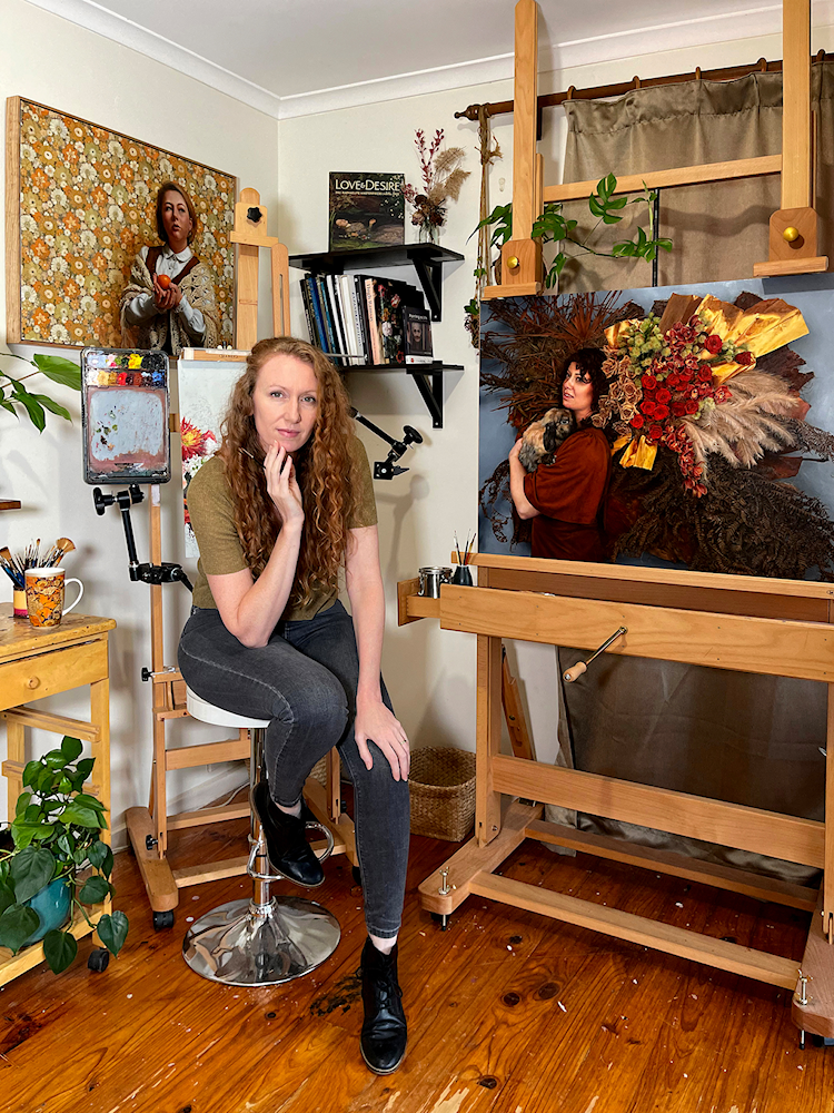 Narelle Zeller (b.1978) is an Australian representational artist, best known for her highly detailed portraits and still lifes. Her oil paintings explore the beauty of the human condition and our connection to the natural environment as well as contemporary stories of time and place. Narelle aims to convey an authentic and honest representation of every subject she paints, her process allowing her to slow down and take the time to appreciate every element - inviting the viewer to look closely with her. For example, in this painting, “The Weaving,” which won First Place Still Life in the 16th International ARC Salon, a beautiful bounty of flowers and lace, it is only under closer inspection that the viewer notices that this vivacious arrangement is teeming with spiders. Can you find them all?