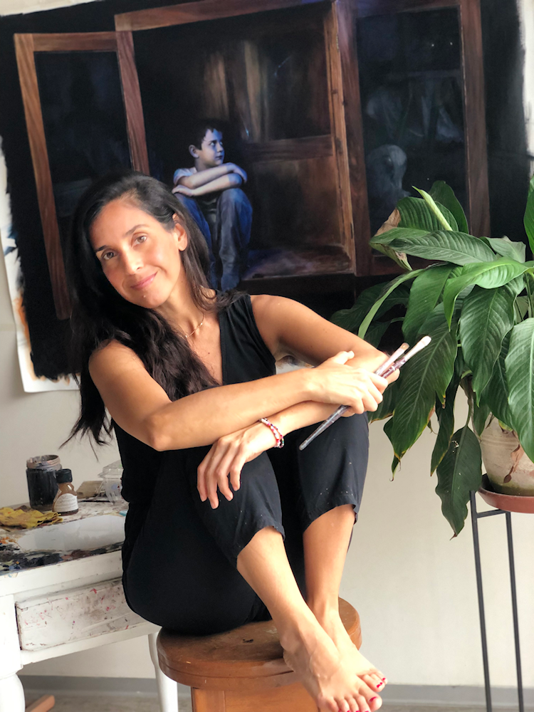 Lali garcia is a self taught peruvian painter, born in 1978Her painting takes place in an imaginative context, making use of different symbols that allude to the unconscious of her characters and the constant struggle between their deepest longings and the repression of the world around them and their own fallible nature.Thus we see scenes where feelings of opposite qualities are found; hope, courage, faith, represented in ethereal, surreal atmospheres with an abstract hint. Hopelessness, nostalgia and loss in the description of its characters, their attributes and expressions, with a realistic stroke and detailed precision.A question inherent to every human being. A constant bid to preserve the essence, within a system created to sabotage individuality. Her work has been selected for INTERNATIONAL BIENNAL PORTRAIT COMPETITION 2021, ICONIC 2021, PAINTING THE FIGURE NOW 2020. Her paintings “Rain” and “Within” are part of the THE LUNAR CODEX / ARTISTS ON THE MOON [AOTM] project. She has available work through 33 contemporary Gallery, and exhibiting internationally.