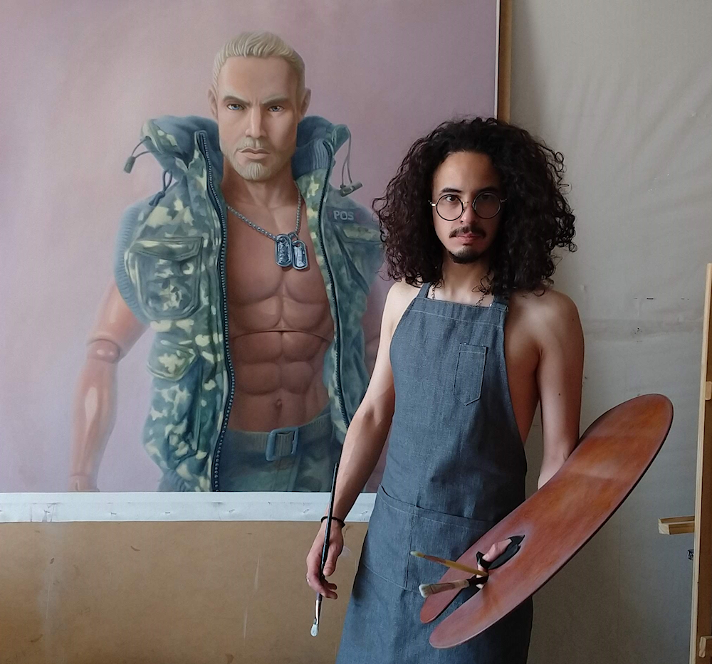 When it comes to painting, he has so far maintained a series of paintings, with a realistic approach and sometimes with surrealist airs, where he addresses themes that refer to the links that we maintain between people and how these correspond to our upbringing, our environment in childhood, and how consequently this defines us as well as the people we perceive.