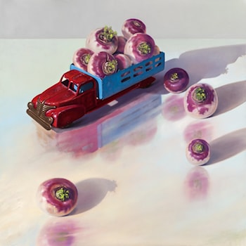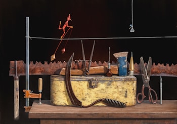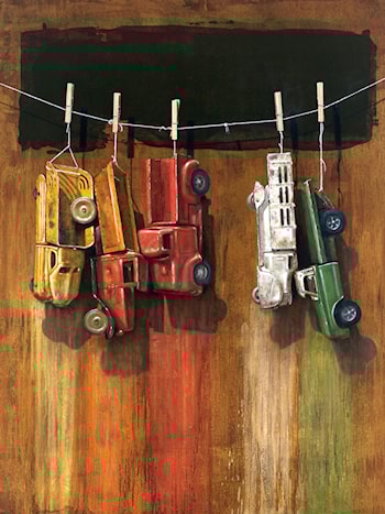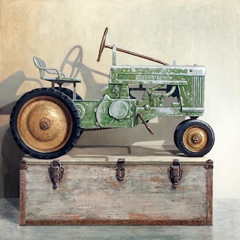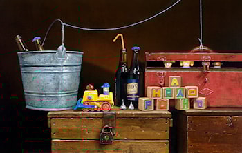 {"Id":7825,"Name":"Richard B Hall","Biography":"\u003Cp\u003EFor 35 years, I enjoyed a successful career in fine art, exploring the opposing worlds of abstract art and traditional still life.\u0026nbsp;\u0026nbsp;\u003C/p\u003E\r\n\u003Cp\u003EBut chance intervened when a mischievous toddler added her two-cents worth to one of my still life settings, prompting me to see my work in an entirely new way.\u003C/p\u003E\r\n\u003Cp\u003EThe incident occurred in 2010 when I entered my home studio to find a still life setup of vintage hand tools had been augmented with a plastic dump truck and driver by my young granddaughter, who had carefully placed the small toy in the thick of the scene.\u003C/p\u003E\r\n\u003Cp\u003EIntrigued by the juxtaposition between the weathered tools and the bright plastic, I tinkered with the display until I got the idea for The Great Escape \u0026ndash; wherein a brave dump truck driver starts a Rube Goldberge-esque process in motion to rescue his toolbox-imprisoned friends.\u003C/p\u003E\r\n\u003Cp\u003ESince I was already \u0026ldquo;breaking the rules\u0026rdquo; for appropriate still life subject matter, I decided to step even further outside the genre by incorporating an abstract background. The artistic union was complete: still life precision, abstract art vibrancy, and a way to insert my cheeky British humor \u0026ndash; all in one painting.\u003C/p\u003E\r\n\u003Cp\u003EMy wife Sharon and I laughed the whole time I was designing the scene. It was such fun to tell a story in this way.\u003C/p\u003E\r\n\u003Cp\u003EPerhaps the funniest thing about The Great Escape was that I assumed that\u0026nbsp;my collectors wouldn\u0026rsquo;t be interested in the work, fearing they would find the lighthearted subject matter to be too frivolous. Much to my surprise, I sold the painting before the varnish was even dry.\u003C/p\u003E\r\n\u003Cp\u003ESince this time, I have been satisfying collectors nationwide who enjoy my blend of the worlds of realism and abstract art served with dollop of humor and wordplay.\u003C/p\u003E\r\n\u003Cp\u003E\u0026nbsp;I\u0026rsquo;ve had people burst into tears when they see a painting that triggers a memory and also had people burst into laughter when they see the humor in an image. Knowing that people have such a personal reaction to the work is the best part of what I do.\u003C/p\u003E","BiographicalImageUrl":"/artwork/782/7825/Images\\8d826864-38bb-47bd-9152-8109e62063b5.jpg","StartYear":1952,"EndYear":null,"Awards":null,"HasAlbums":false,"HasPortraits":false,"HasRelationships":false,"HasArticles":false,"HasDepictedPlaces":false,"HasLetters":false,"HasLibraryItems":false,"HasProducts":false,"HasSignatures":false,"HasVideos":false,"HasMapLocations":false,"TotalArtworks":25}