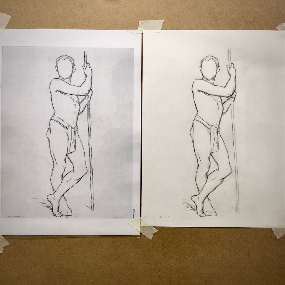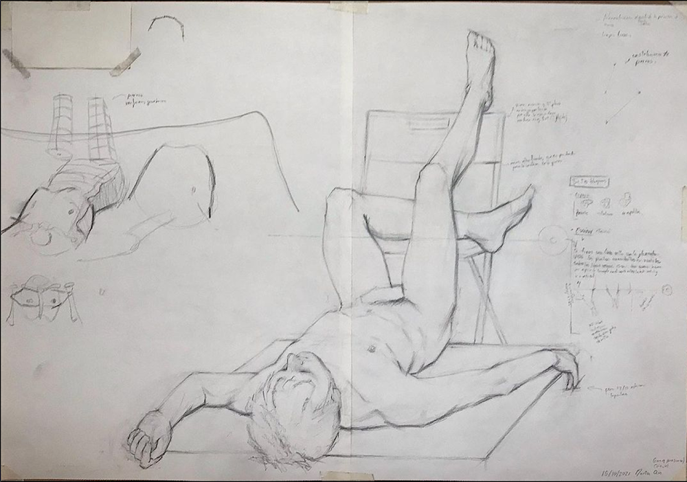 Cast drawing and painting (Different sketches in different position and final drawings)