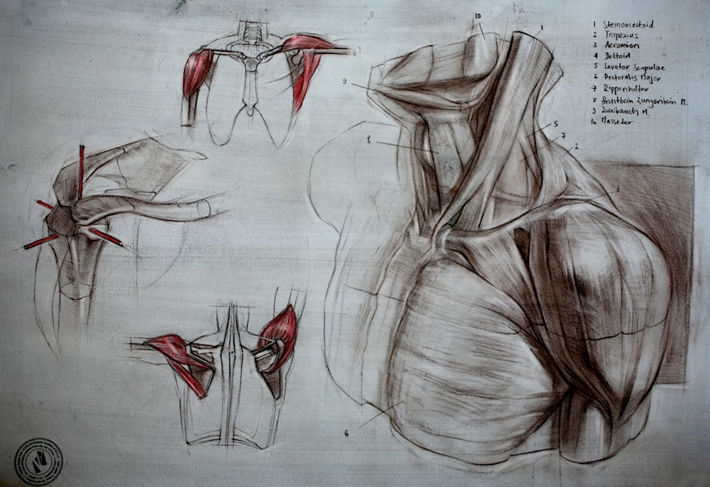 Our Artistic Anatomy workshops are designed for obtaining a full understanding of the human body. All the course content is offered in sections within the two first years of the Three-Year program. As all topics related to the human body cannot be taught in one single workshop. Each workshop session consists of a theoretical component and practical exercises.