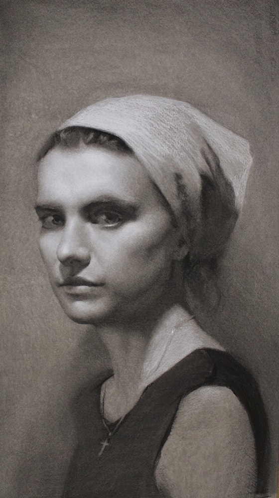 charcoal and chalk 27 1/2 x 19 1/2 ins (70 x 50 cms)