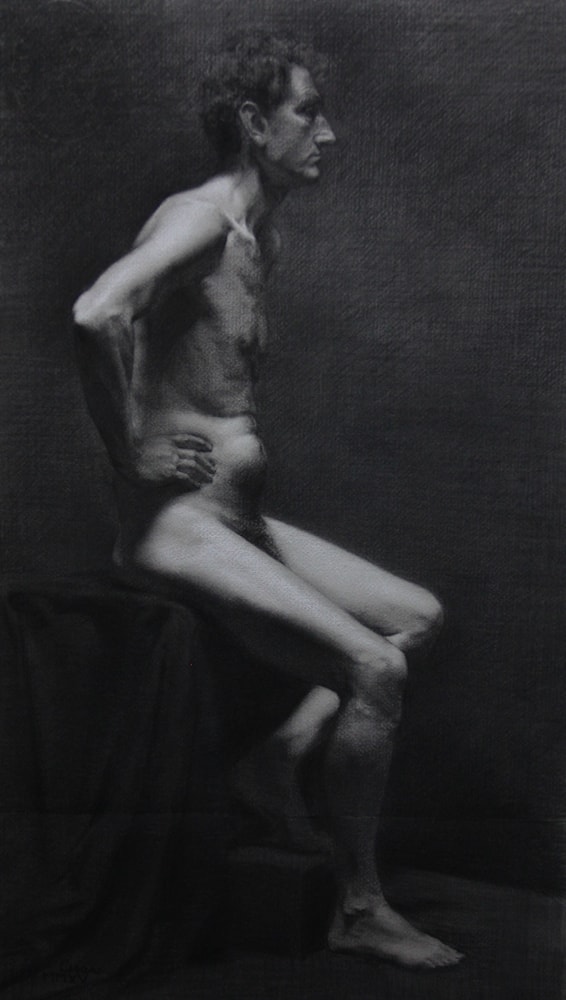This work was done at the Florence Academy. It shows the search for the light effect, masses of light and shadow, atmosphere, edge variety and modeling of the form.