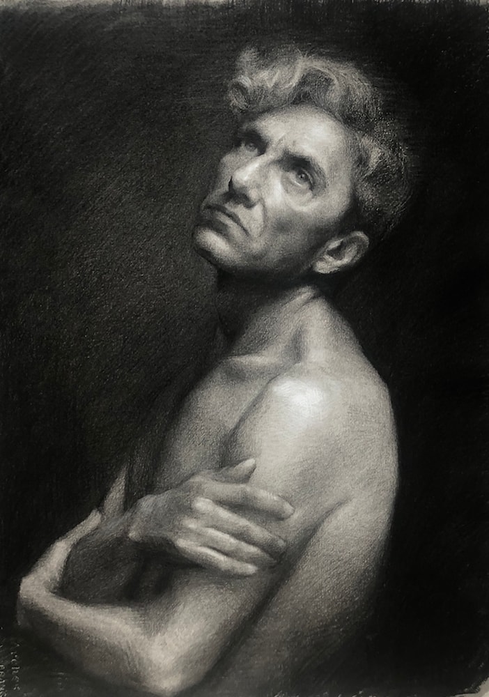 Charcoal and white chalk on toned Arches paper