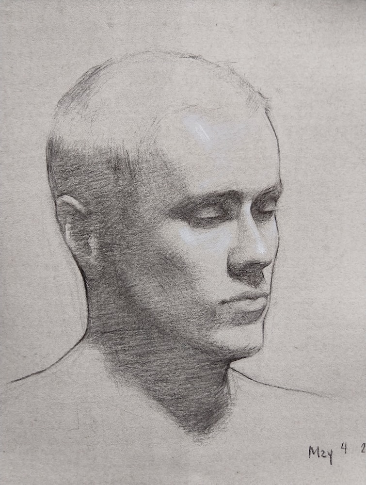 Charcoal and White Chalk on Prepared Paper