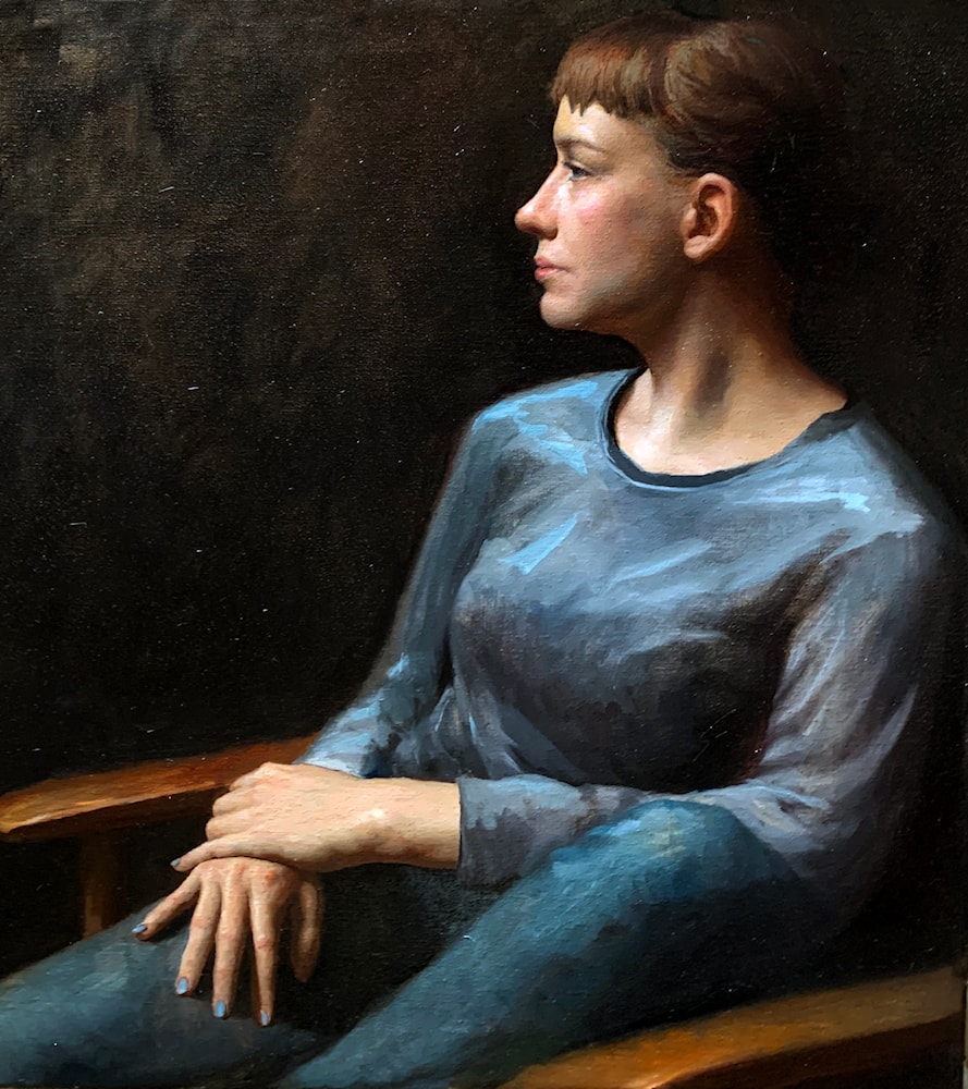 I was mostly happy with this painting, but I see that there are some proportional issues. The lengths of the arms are a little wonky.