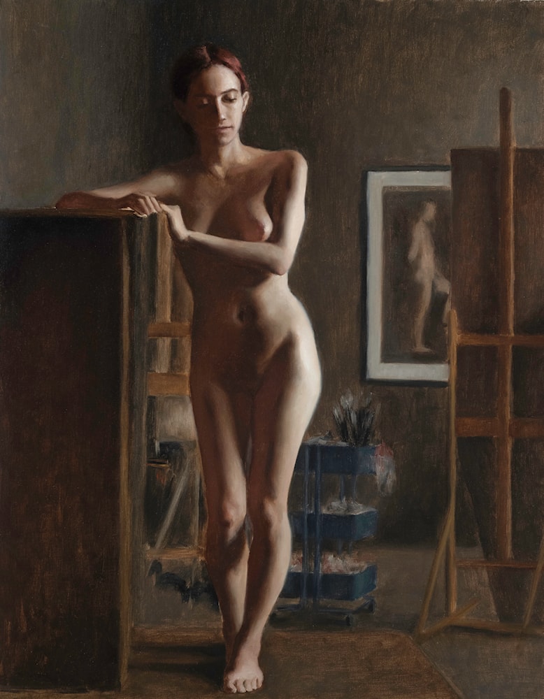 A painting of a figure in interior, the model cancelled due to sickness during the final week, so part of the painting was painted with imagination and memory, without reference of the model.