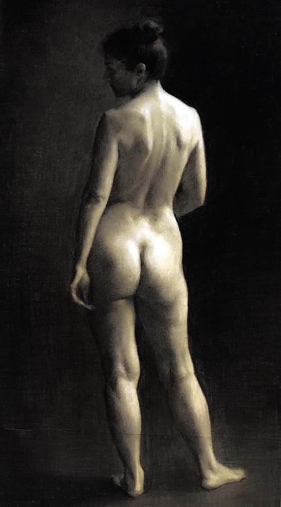 charcoal, white chalk 29 1/2 x 16 ins (75 x 41 cms)