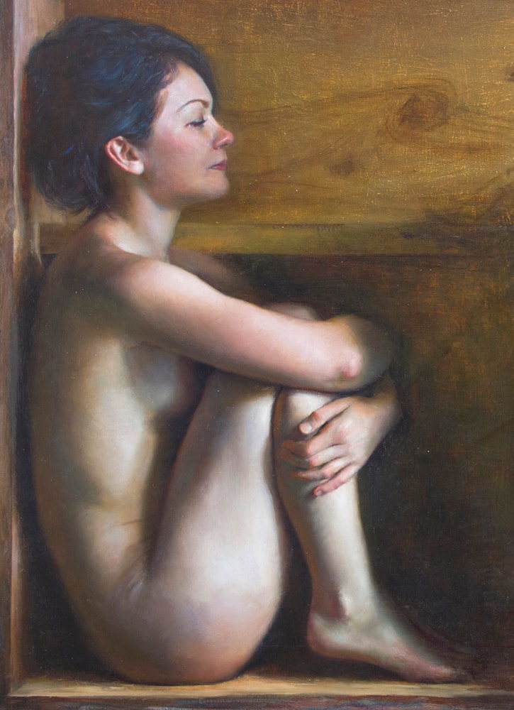 Consolidation represents his turn from traditional still lifes to the interplay between human and machine. An ode to how technology influences human ontology, Consolidation juxtaposes an old computer with a young lady. The machine confronts the viewer directly, while the human figure pays no attention, staring deeply only at the computer. Bononi invites us to look deeper into the modern man’s interaction with technology in the most mature demonstration yet of his ability to play with shadow and space.