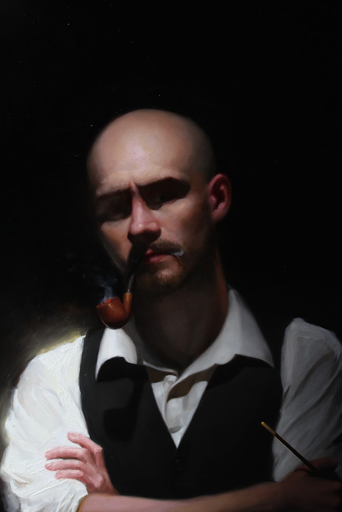 Made from all personally ground pigments.... I still have an 1898 pump organ piano in my driveway that I stripped the Ivory keys for to make black. The painting has many hidden symbolic peices hinting to the relationship of the higher and lesser self.
