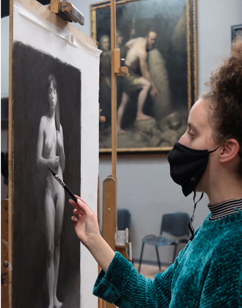 In January 2020 I finally started studying at the Florence Academy of Art. At the beginning it was very intense but exhilarating to be studying and practicing art from morning to night, doing extra-hours and long weekends. The opportunity to draw long-poses under the mentorship of highly trained teachers, to finally have access to specialized training. I was surrounded by young artists and driven people. I made a massive leap in my perceptual and technical ability, and I was very hardworking.