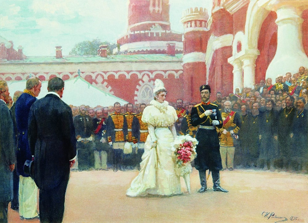Emperor Nicholas II Receiving Rural District Elders in the Yard of Petrovsky Palace in Moscow