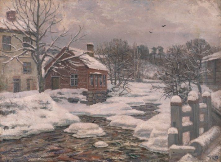 Vinterlandskap med hus ved Mesna