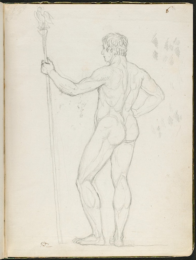 Nude Study of Consul Lebrun Holding the Imperial Insignia; verso: Faint Sketch of the Comtesse de la Rochefoucauld and the Comtesse de la Valette